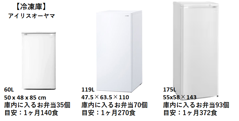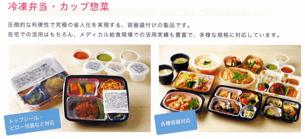 ゆせん、お弁当、すべて冷凍食品でお届けします。余っても冷凍保管できますので次回に廻すことも出来ます。